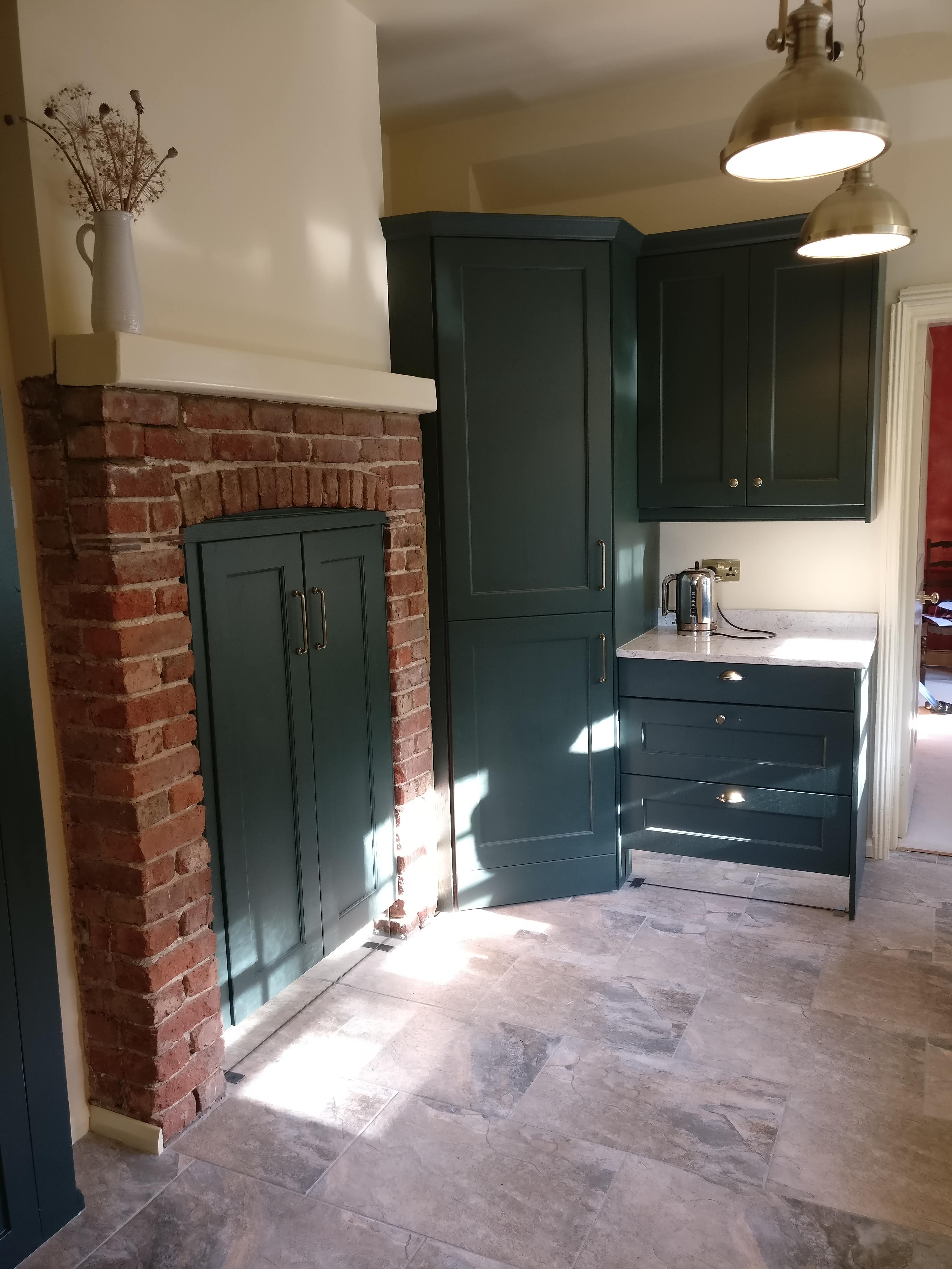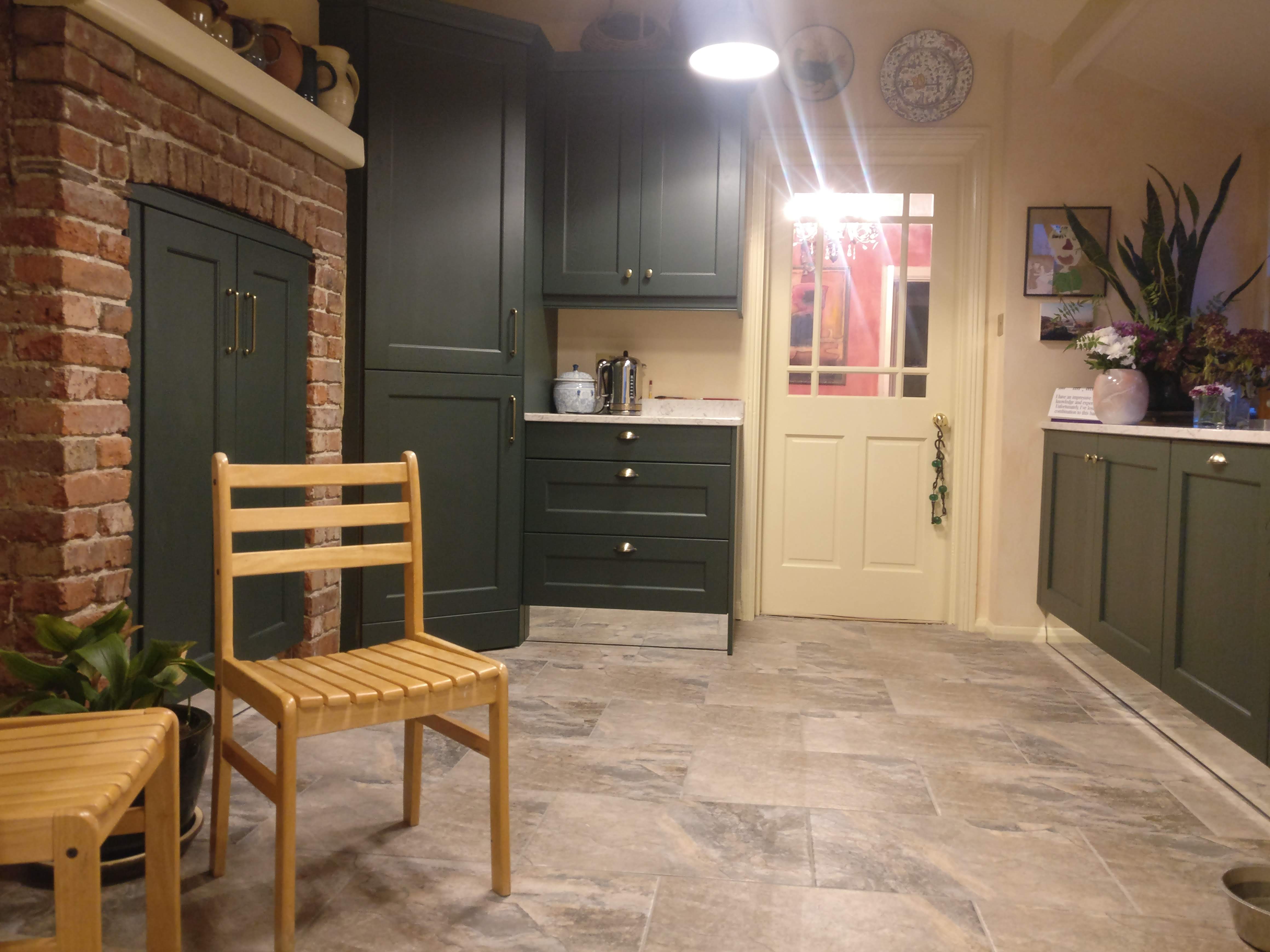 Kitchen Style: Dark Green Painted Solid Wood Shaker doors