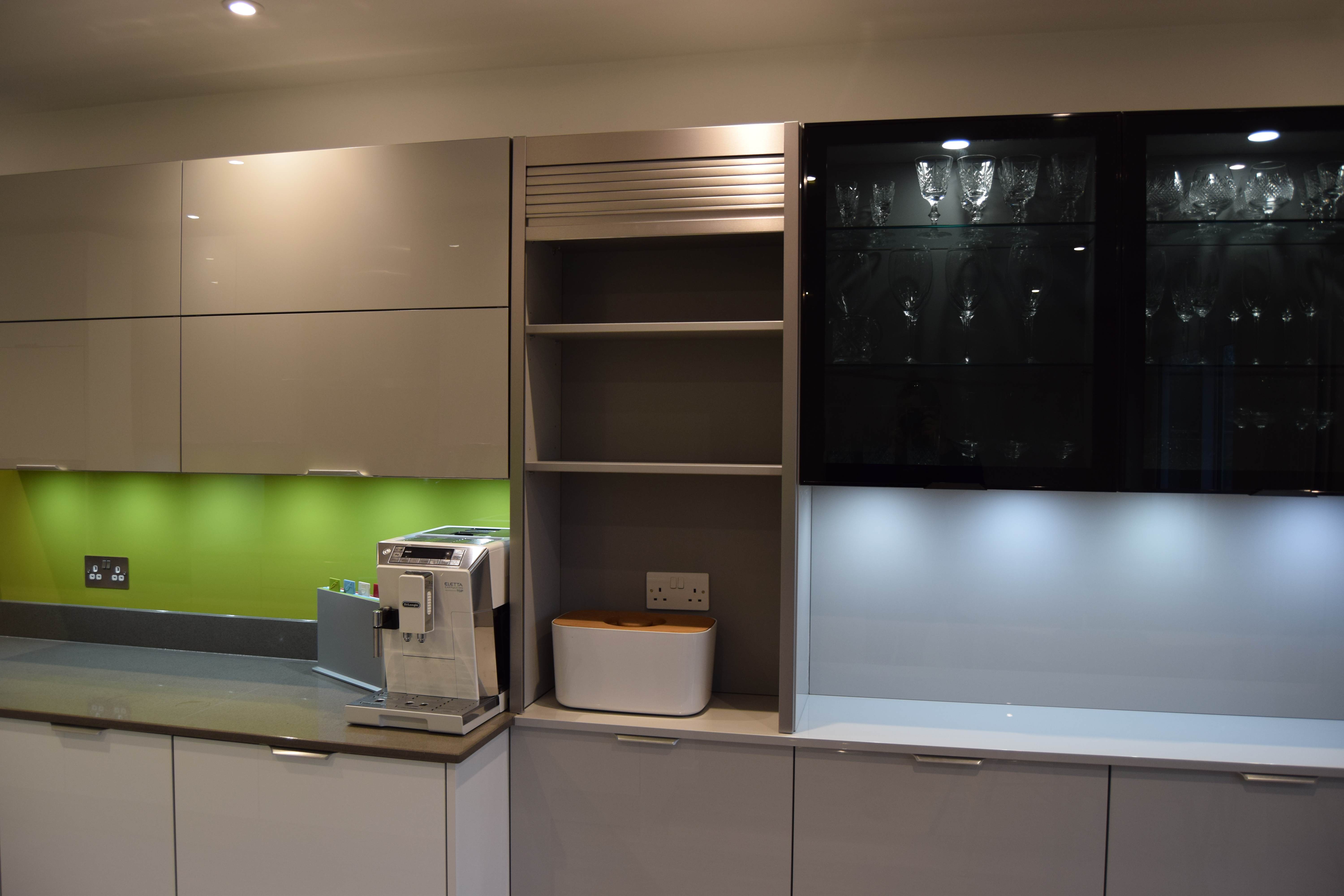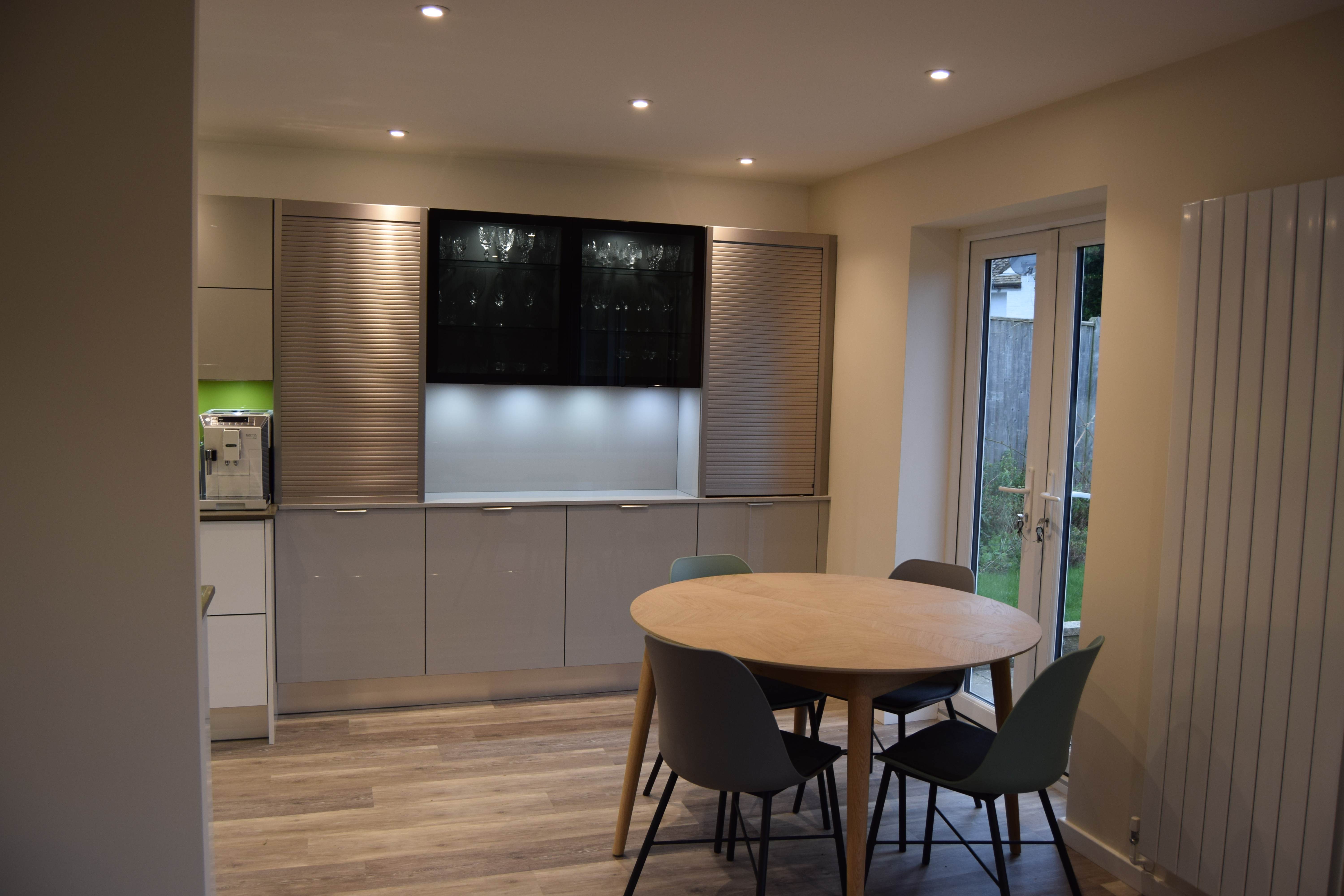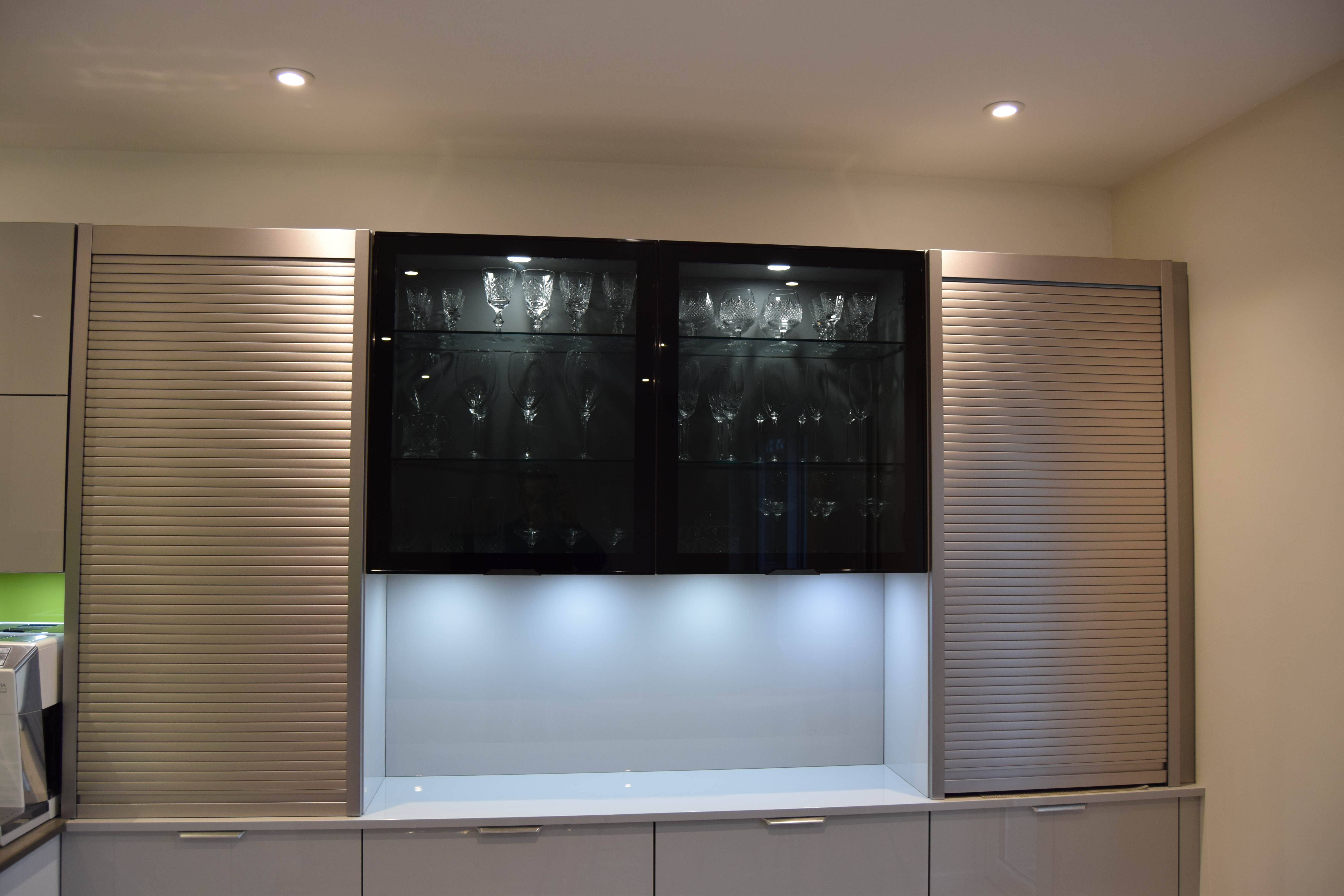 Dining area units with glass unit and tambour units.