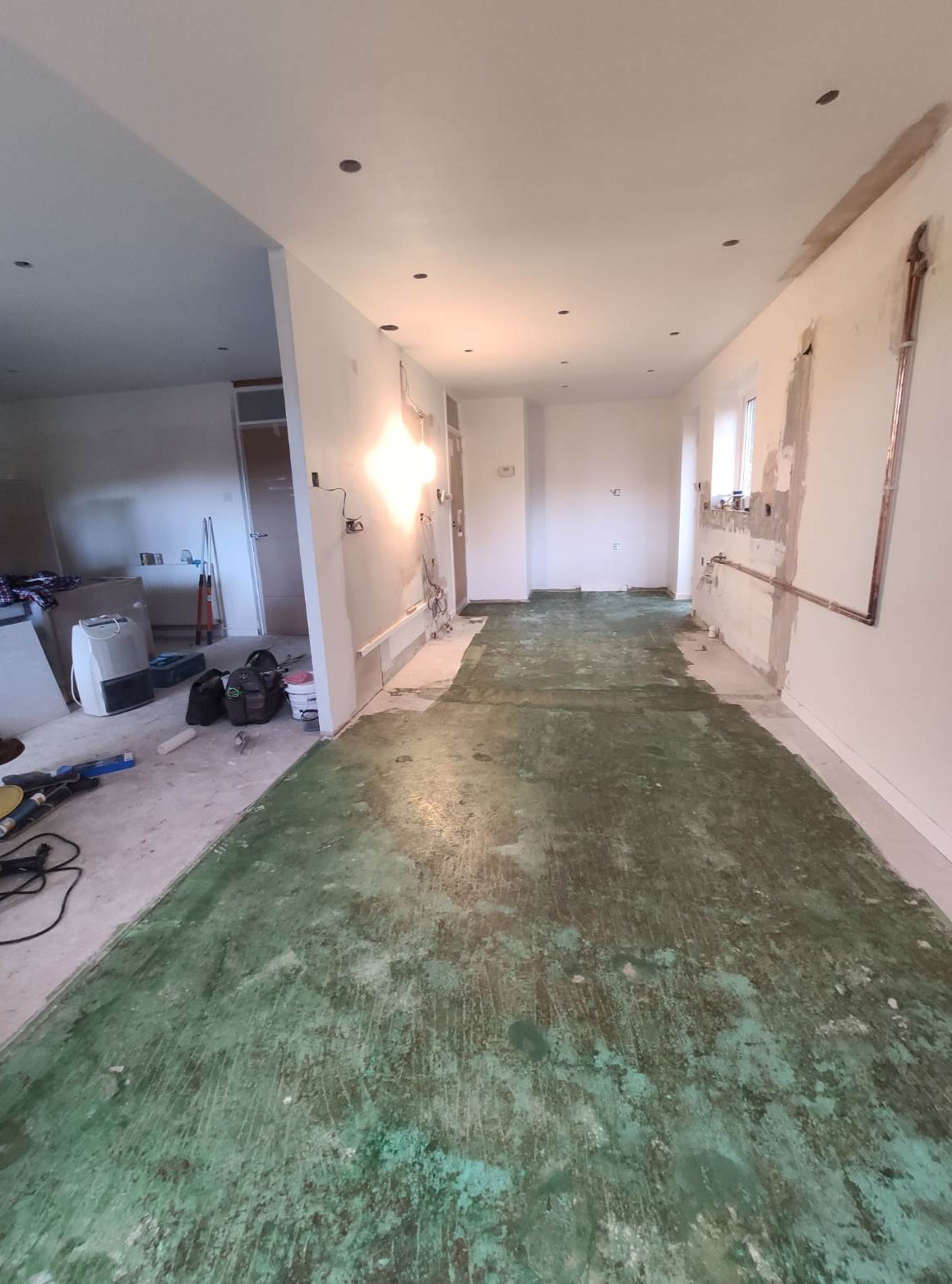Removal of internal walls, re plaster, re decorate, Lighting throughout the three areas.