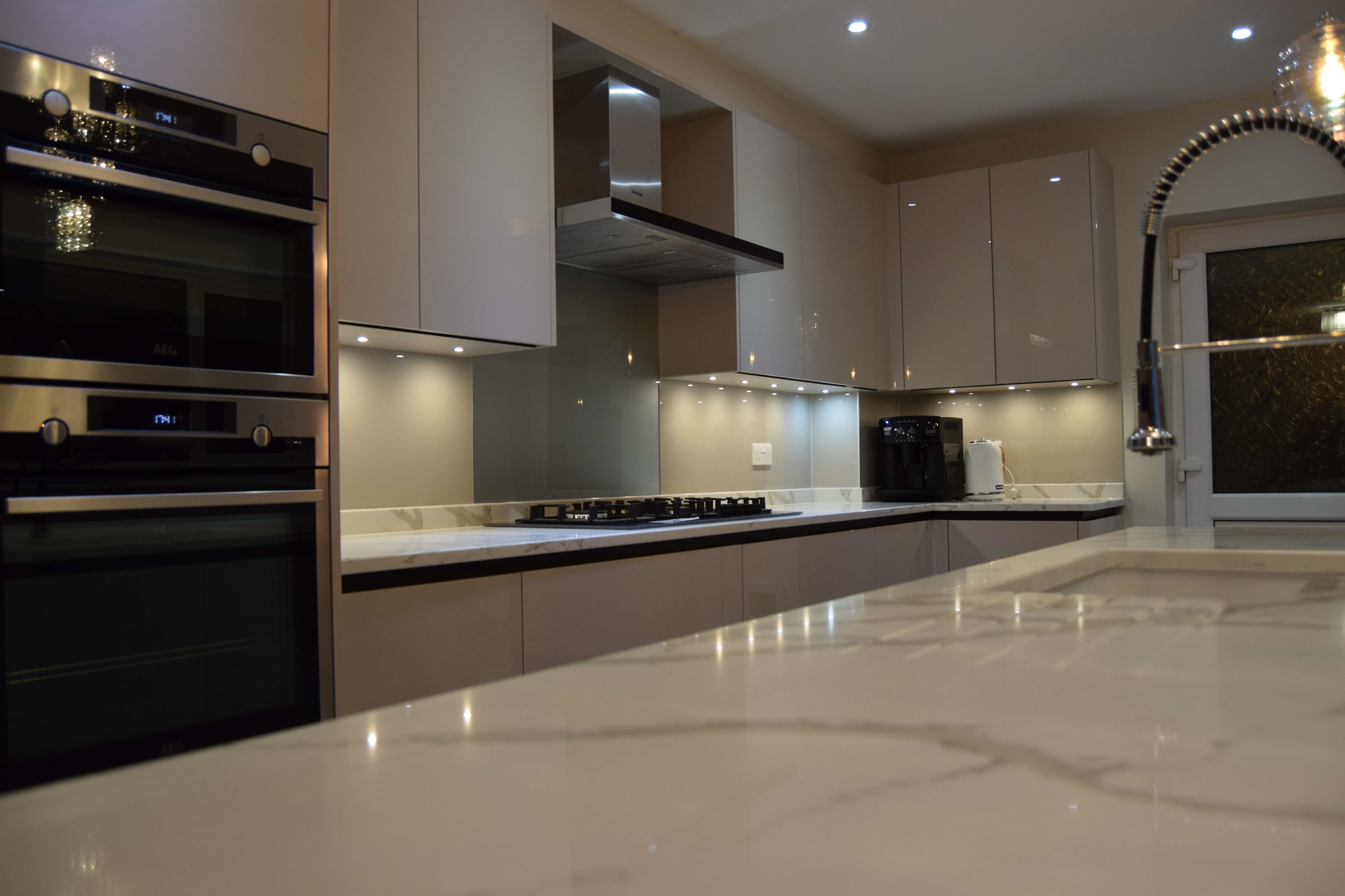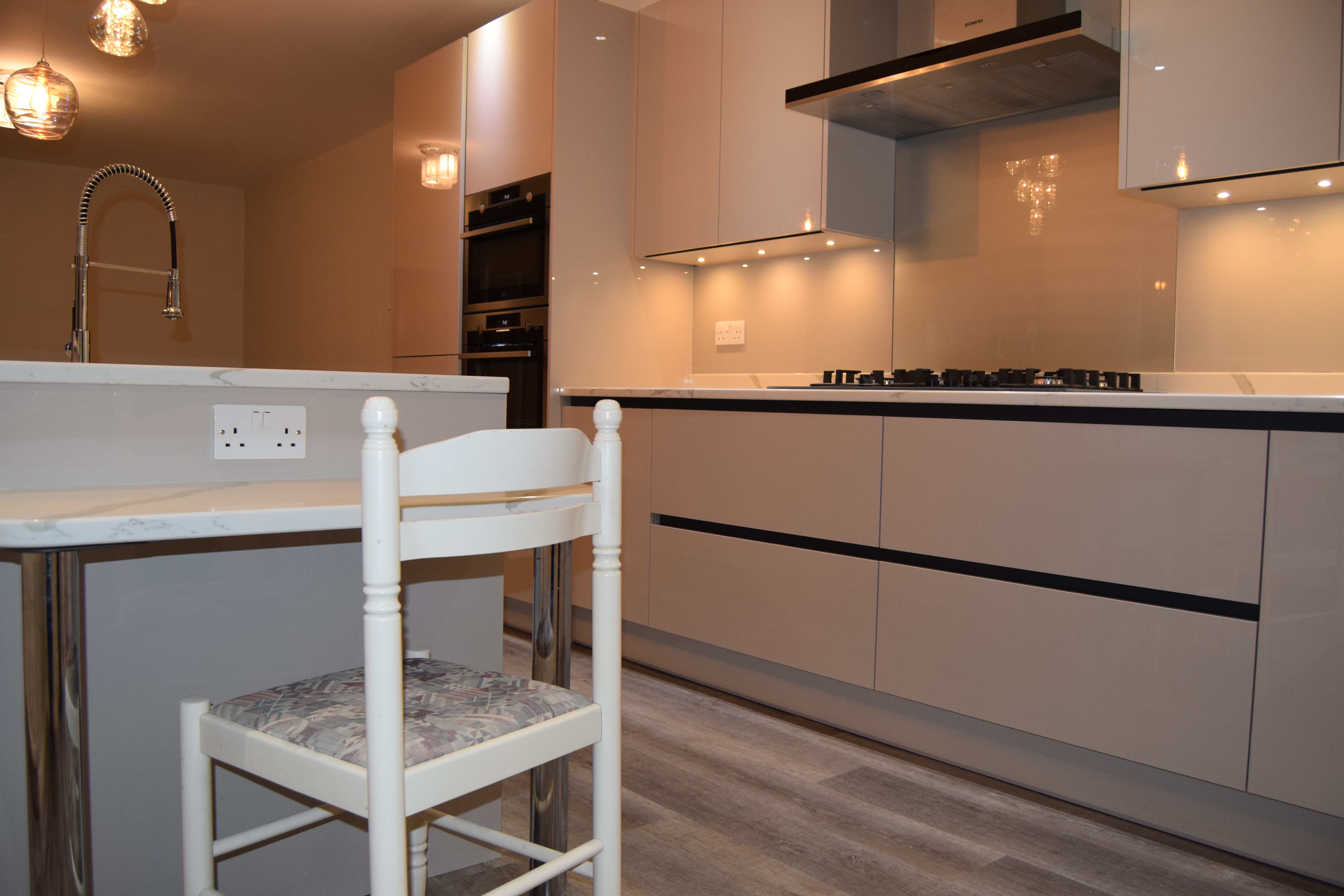 Customer comments: LOOK NO FURTHER, YOUR SEARCH IS OVER. We spent 3.5 years going through problems with all the main large kitchen “high street” retailers, that was just designing and drawing up specifications for our kitchen, in that period before any work commenced they ALL had issues. Then I found, MHI. From start to end we had nothing but first rate service, from design advice, listening to our desires and advising what was actually practical and achievable, and then all the work undertaken from start to finish. Plastering organised (on a very rough ceiling), reboxing in things, plumbing, gas, sunken lights, etc. We now have a kitchen to die for. No multiple kitchen designer could pull this off, they don’t have the skills and experience of MHI, instead they rely on contractors. MHI provide a proper service covering EVERYTHING. My kitchen is a work of art, and I’d welcome anyone who wants to see it. We have a LARGE kitchen, this was one of MHI’s bigger installations. We’re 110% satisfied on all counts.