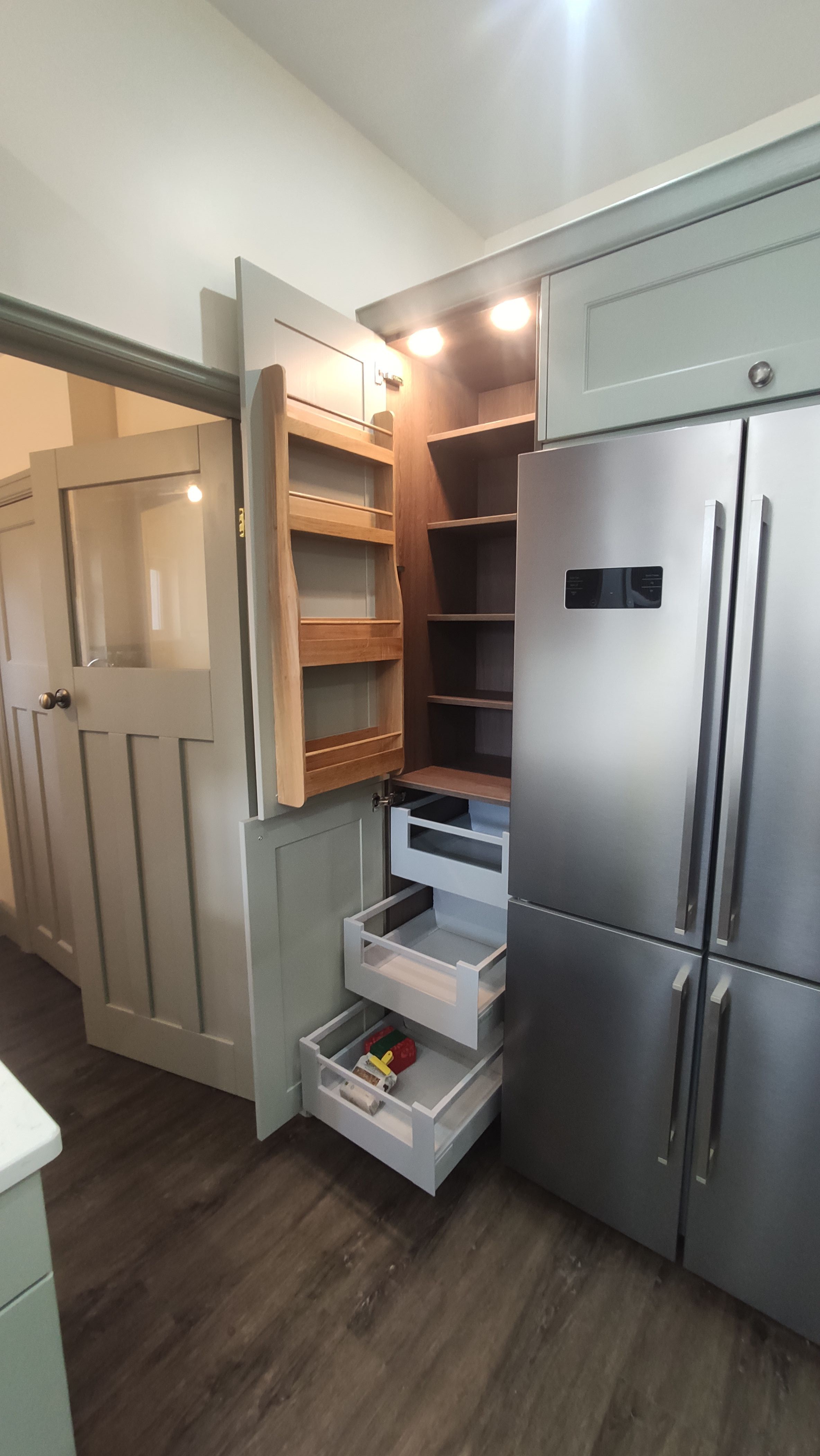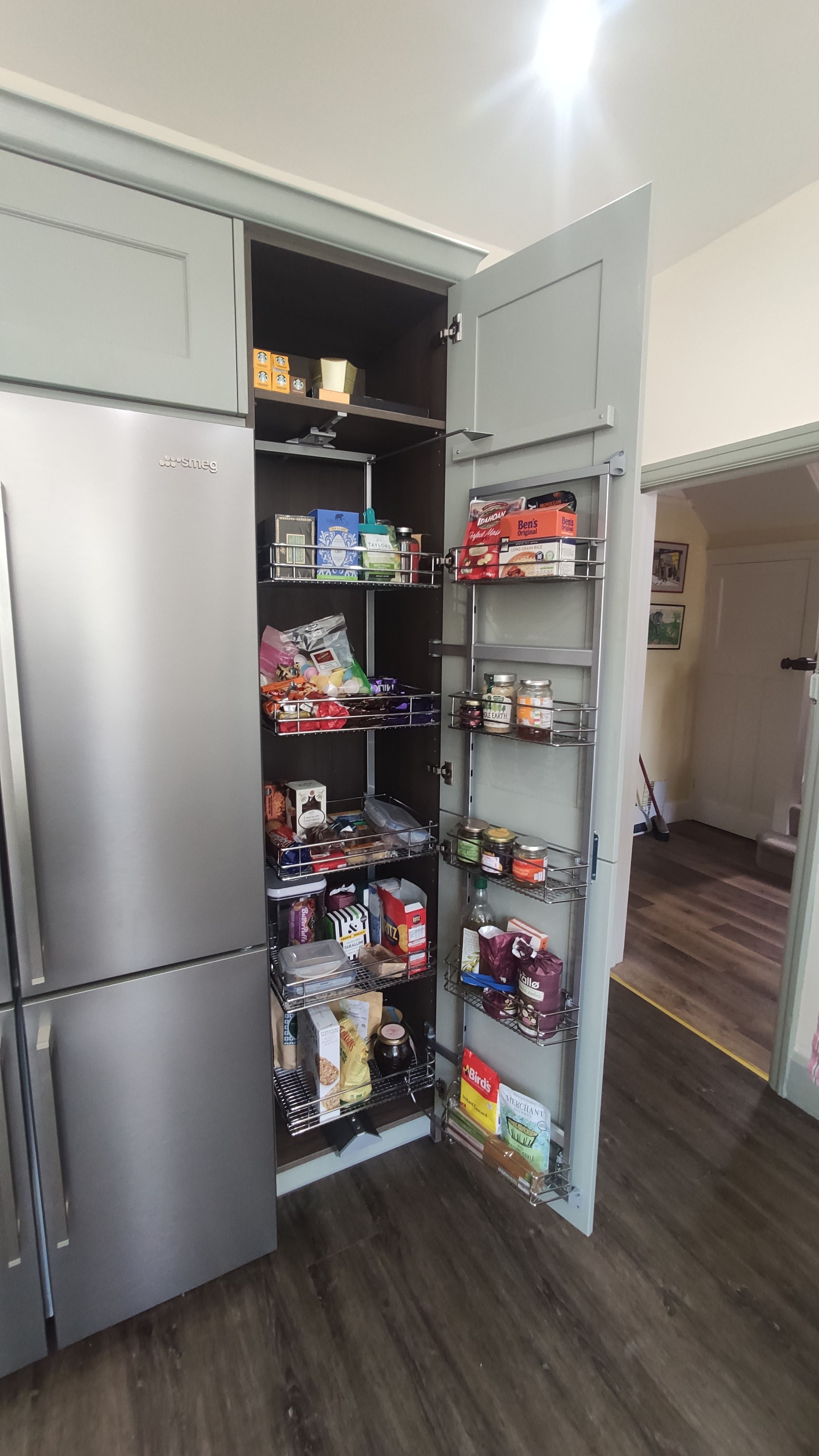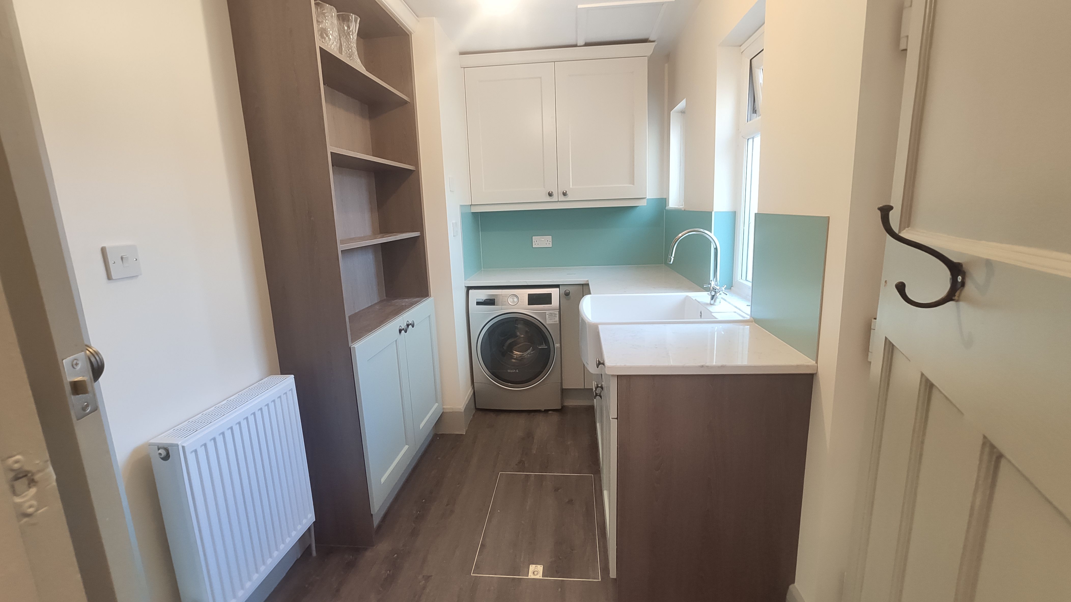 Walk in Larder, New floor, new internal door, ‘Alusplash’ splashbacks
