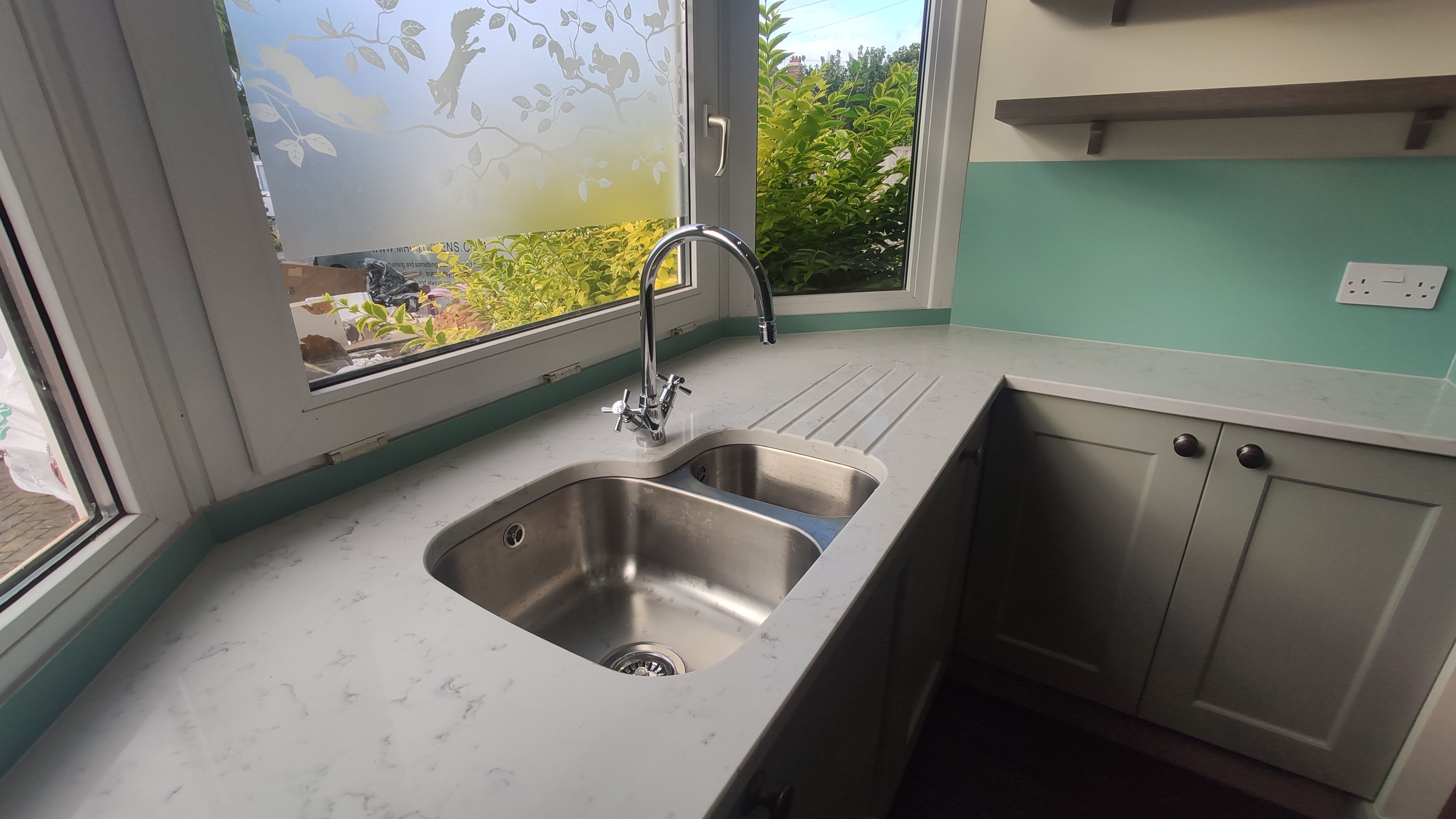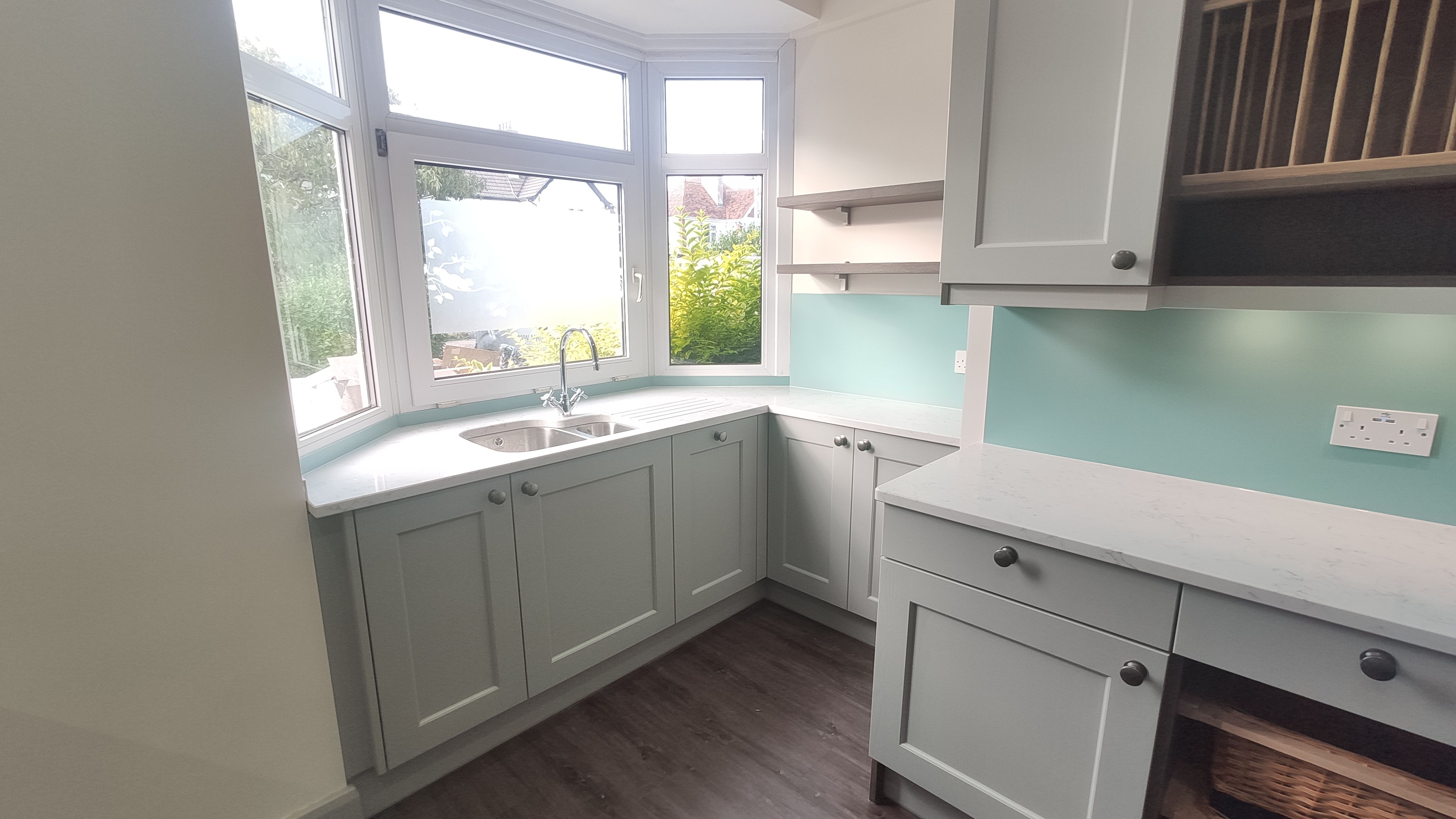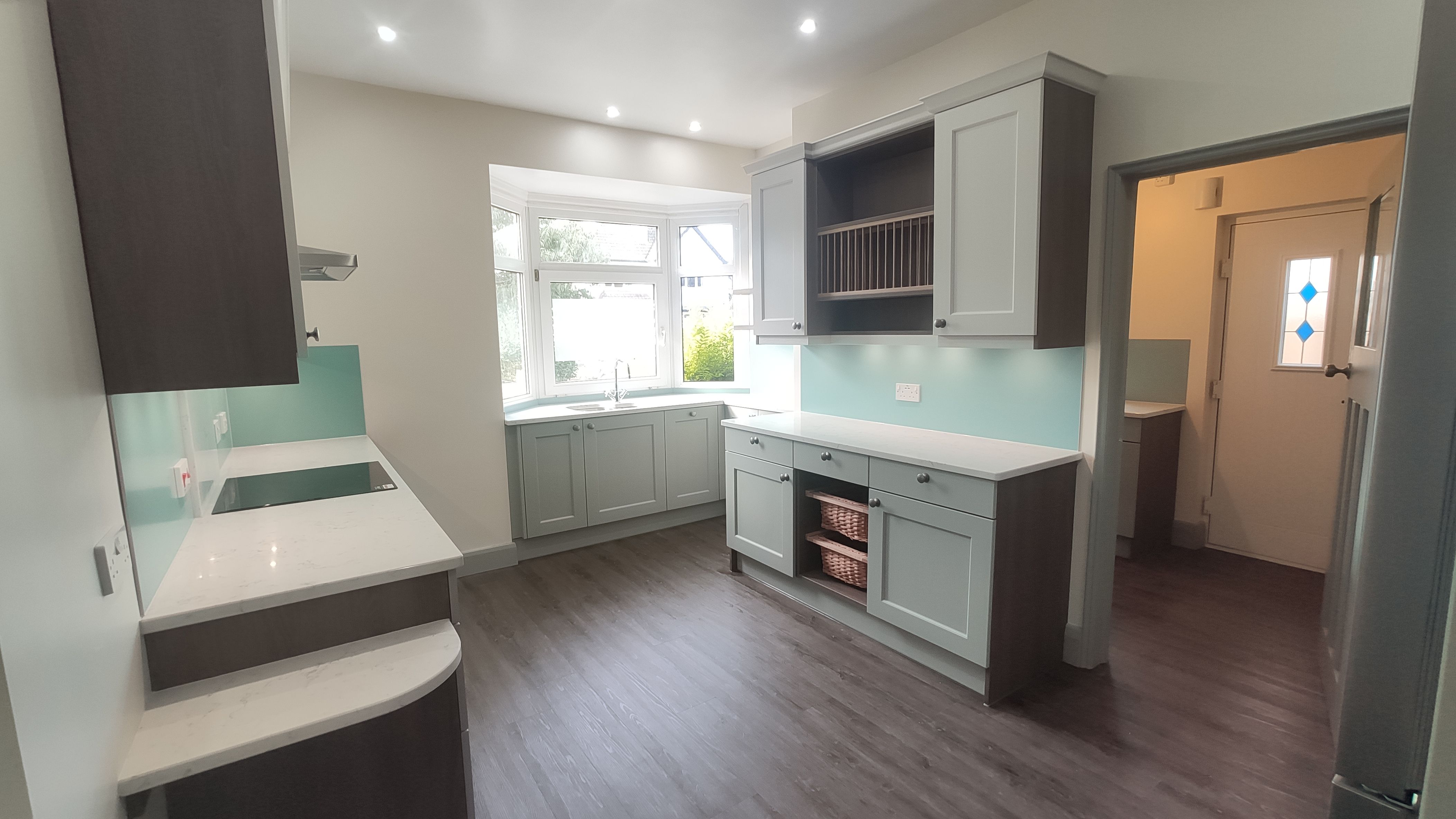 Walk in Larder, New floor, new internal door, ‘Alusplash’ splashbacks