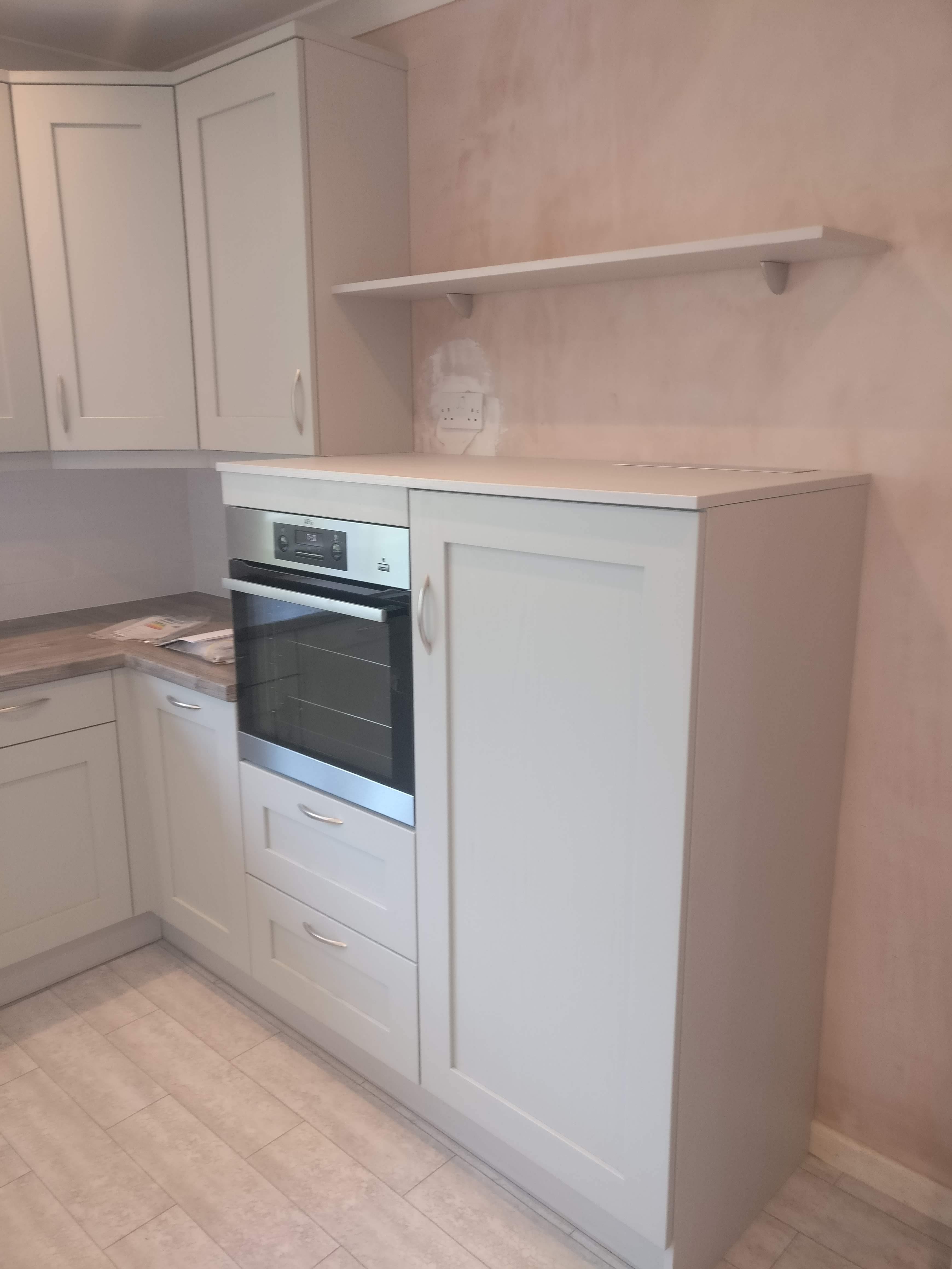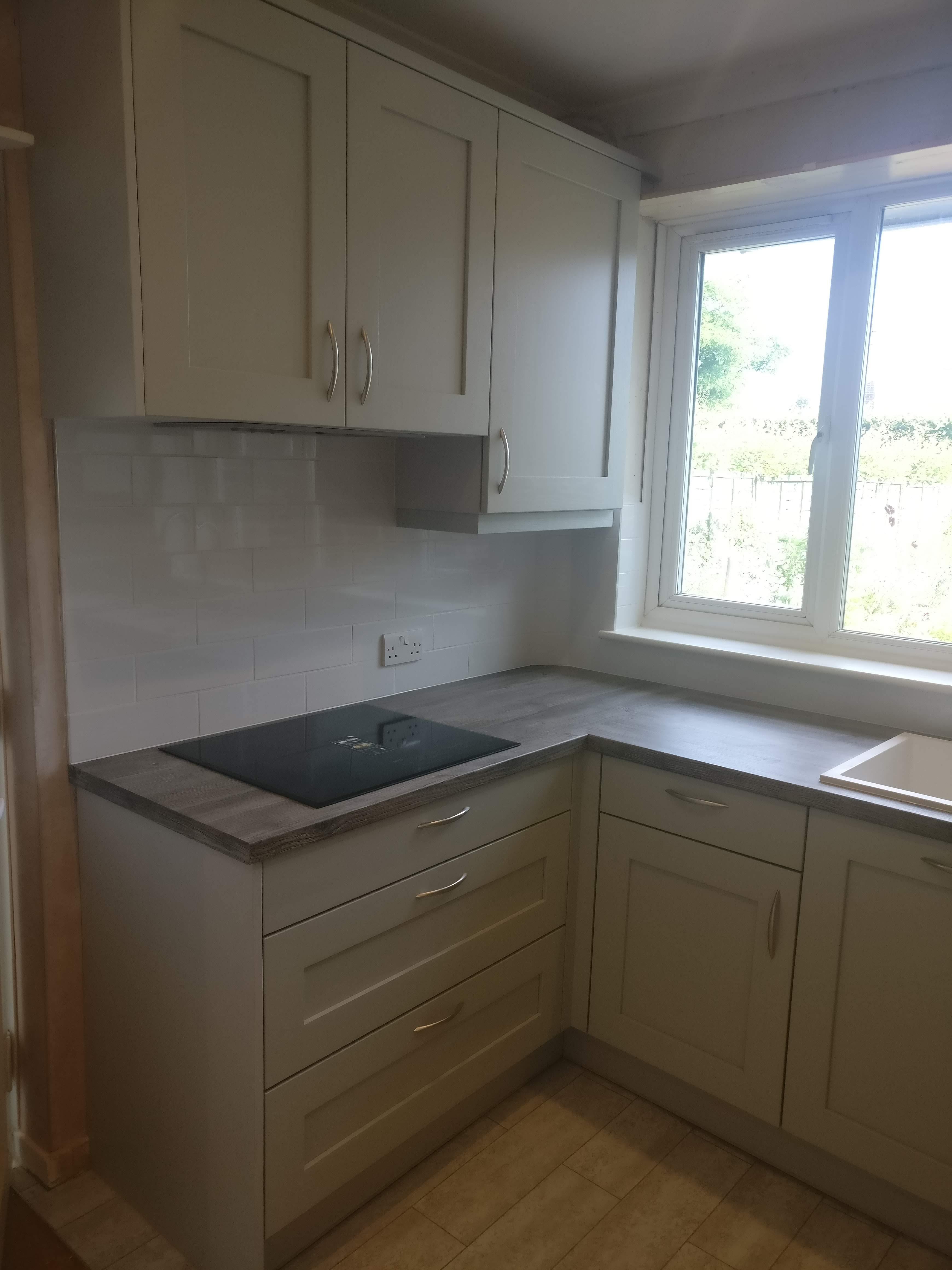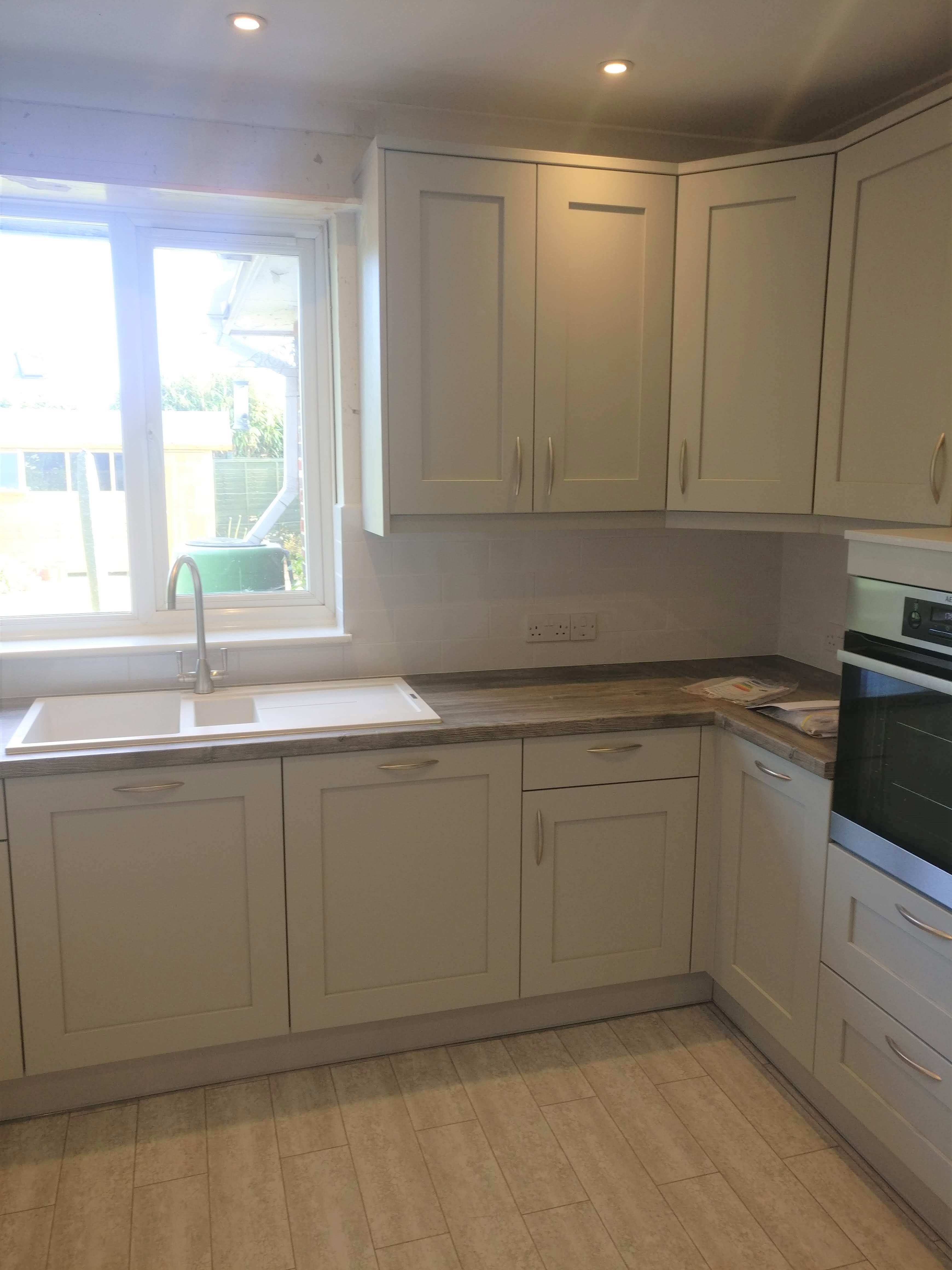 Full Kitchen replacement including flooring and tiling, electrical work, Oven, induction Hob, Extractor, Dishwasher, Integrated fridge, Freezer, utility room units and sink