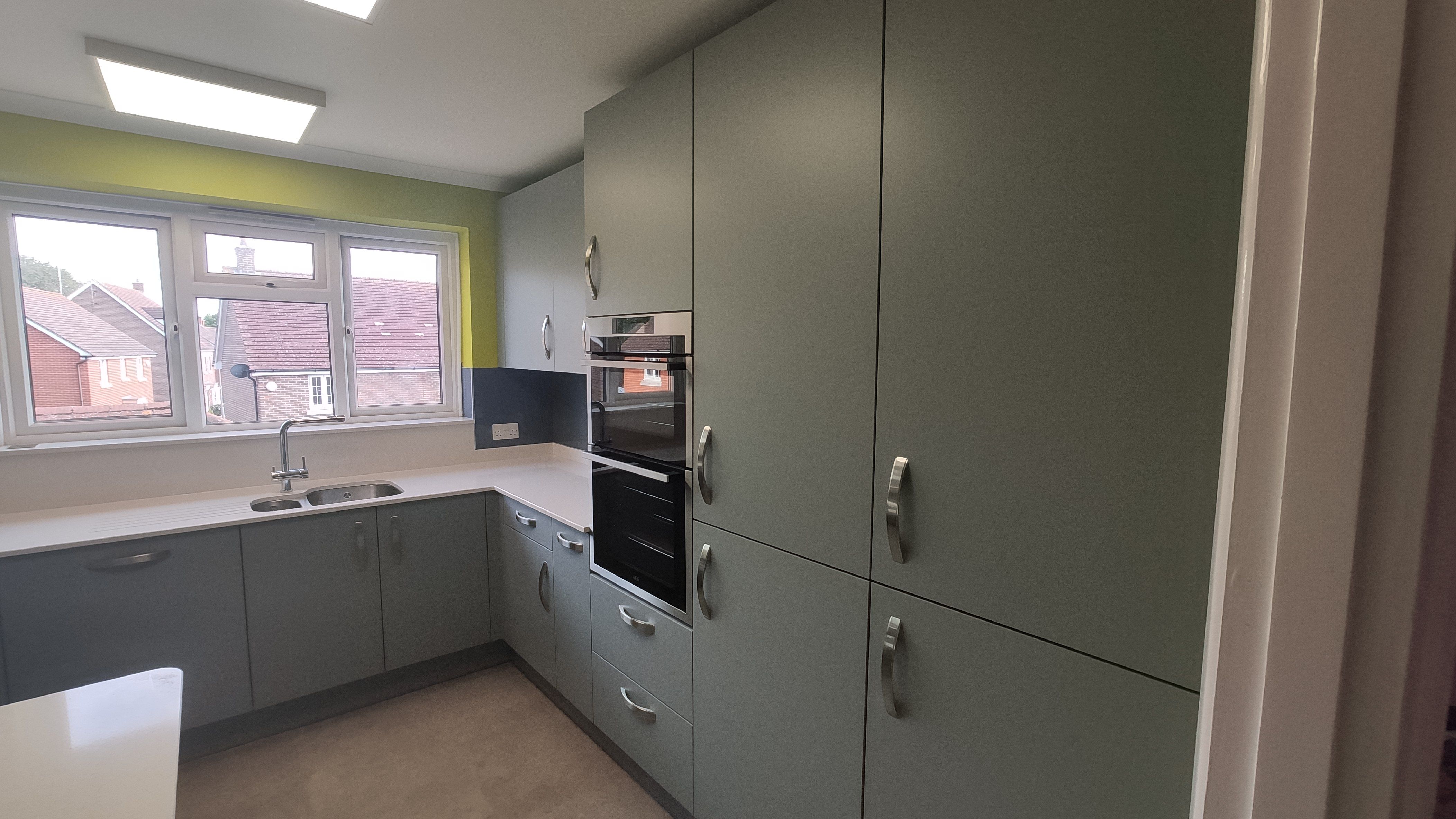 “I would have no hesitation in wholeheartedly recommending Mark at MHI Kitchens. Certainly worth the wait for him to fit my job in (which actually suited me perfectly). From the very outset, Mark took a lot of time to understand what I wanted from my new kitchen – his first visit took 2 hours whereas the other companies that quoted were in an out within 20 minutes. He came up with a creative solution to a space issue which meant I didn’t have to compromise at all on the dream kitchen I hoped for. This involved creating a utility room in some otherwise dead space on my landing. Other companies’ designs were herding me towards a fridge/freezer rather than a large separate ones and a washer/dryer rather than separate ones. Mark really went above and beyond to create a fantastic space – even so far as to re-route two sets of central heating and water pipes which had previously been surface mounted and boxed in. Mark clearly knows his stuff and was always on hand to deal with dozens of my queries and to provide me with responses based on his experience. It was great to have someone on board who does everything from original design through sourcing the materials to fitting it – the only other people were someone to sign off gas work, a plasterer and specialist measurer/fitters for the worktop & splashbacks. It gave me confidence that the design features would be brought to fruition. I have two stunning spaces and feel honoured that Mark chose my project to work on.”
