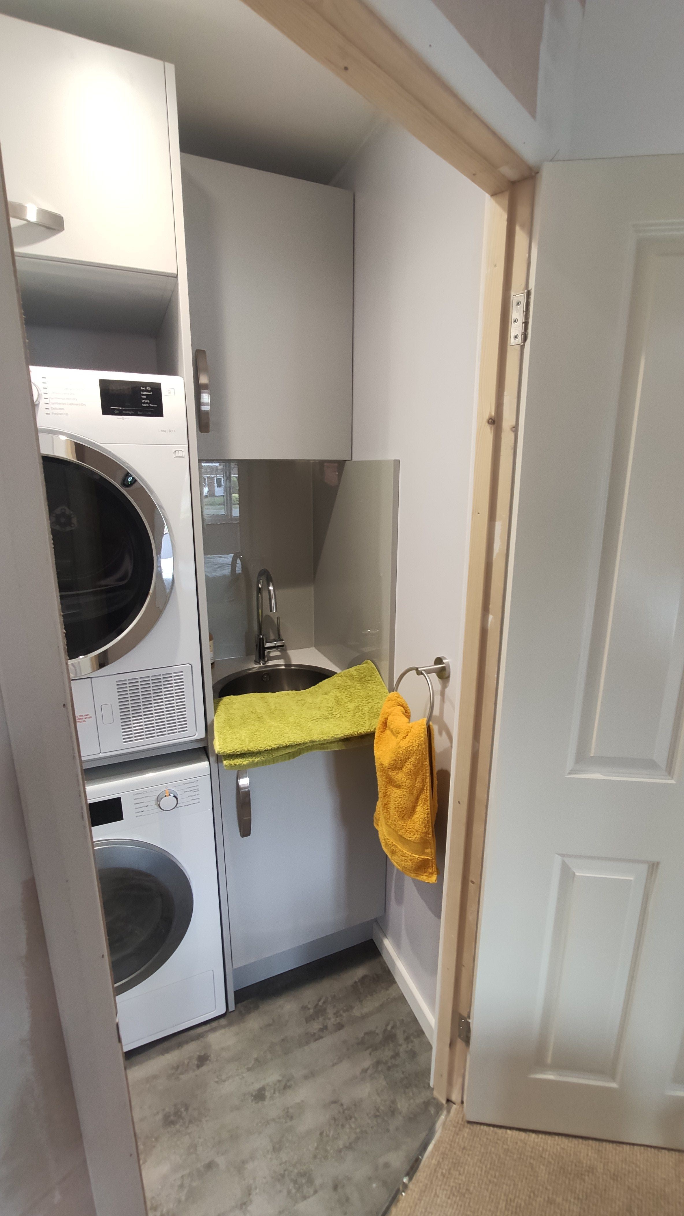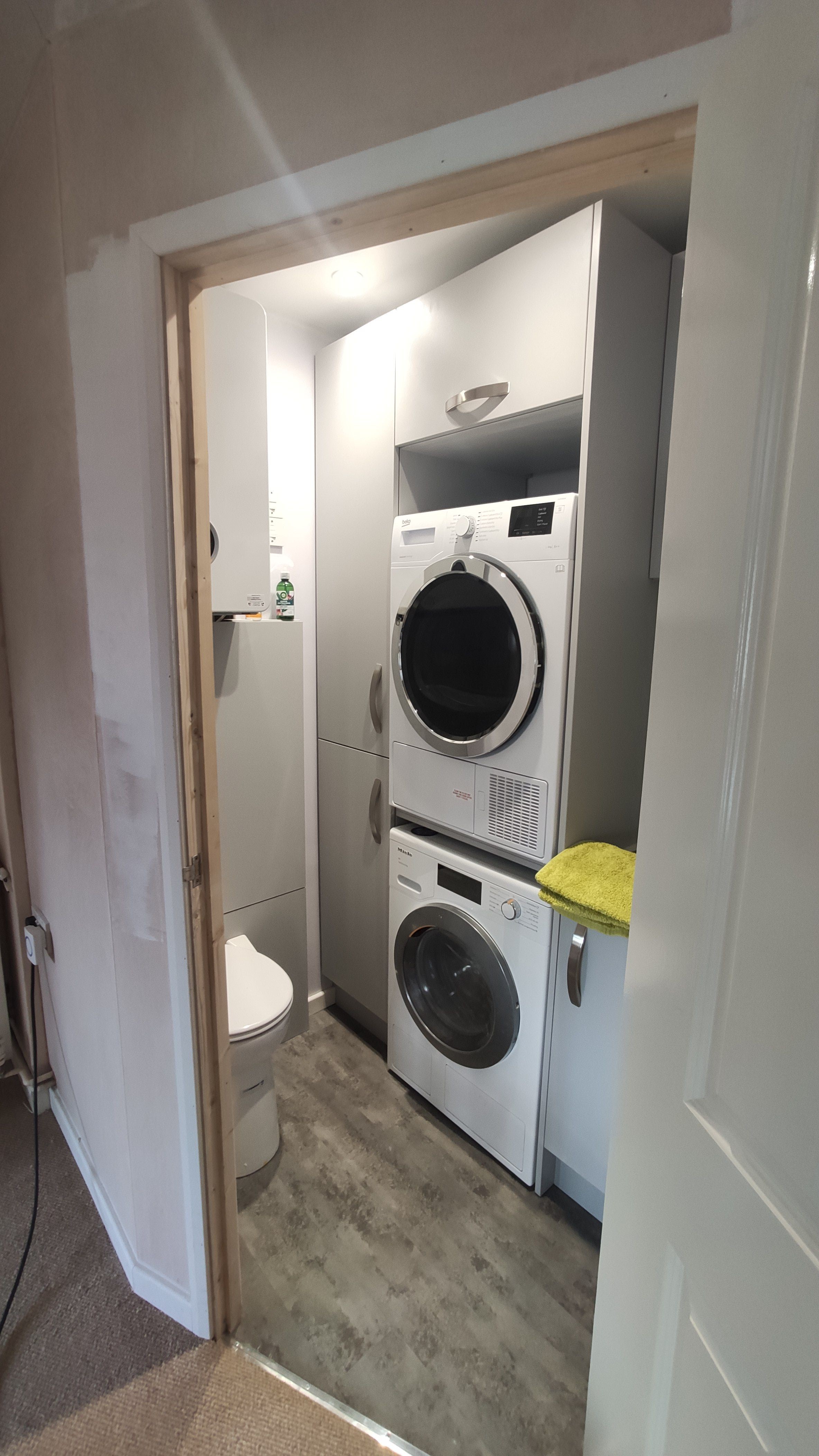 This was quite a big project, the client wanted a lot of features and appliances in his kitchen and the space did not allow everything he wanted. So I suggested we use a large area in his hallway to create a whole new utility room to house the laundry and free up space in the kitchen.
